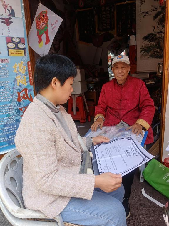 近期,薛喜乐正申报广东省风筝非遗相关项目,应老艺人邀请,梁老师积极参与该项目相关材料的整理与撰写,包括完成省级非遗传承人年度自评报告、年度工作计划与工作总结等文档资料,协助上报上级文旅部门评选备案,为老艺人消除风筝传承过程的后顾之忧。