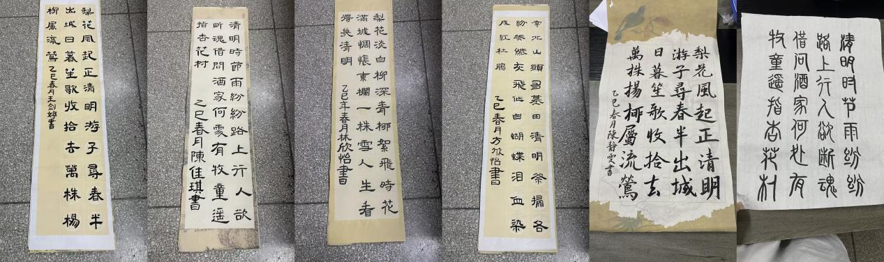 本次活动以清明节为主题,鼓励同学们创作或书写与清明相关的诗词作品。参赛者们倾注匠心,以墨传情——或楷书端庄,展现清明之肃穆;或行草飘逸,抒写春日之诗情。一幅幅作品笔力遒劲,墨韵悠长,既有对传统诗词的深刻诠释,又体现了师范生扎实的书法功底。