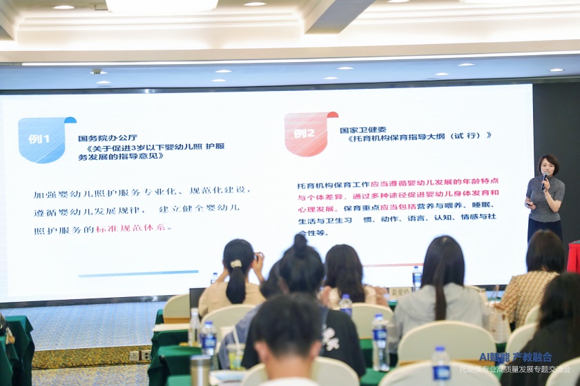 一是要深化AI技术应用。在教学中融入AI工具,如智能评课系统、虚拟仿真实训等,提升学生数字化素养;二是完善课程与支持体系。可研究在构建“托幼一体化”课程群,建立多元支持体系,如增设心理健康课程、学习方法指导课,通过“专本衔接”拓宽学生发展路径等方面探索工作新渠道;三是积极推进产教融合协同育人工作。联合优质托幼机构与企业,共建实训基地,开发活页式教材,鼓励教师参与行业标准制定,提升专业群的社会服务能力;四是强化师资队伍建设。通过“以赛促教”、跨领域合作研修,提升教师AI应用能力与科研水平,打造“双师型”团队。